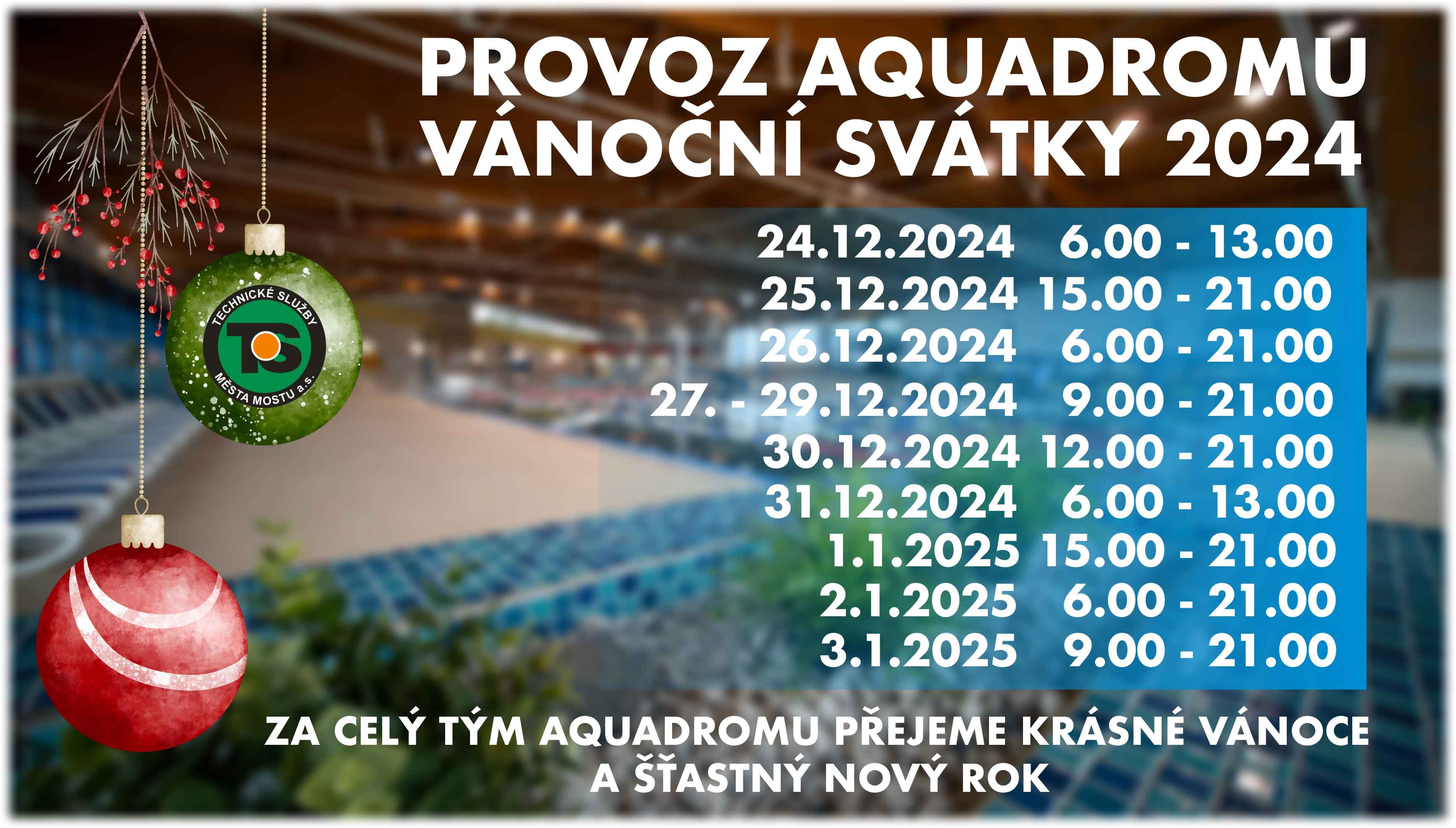 PROVOZ AQUADROMU BĚHEM SVÁTKŮ