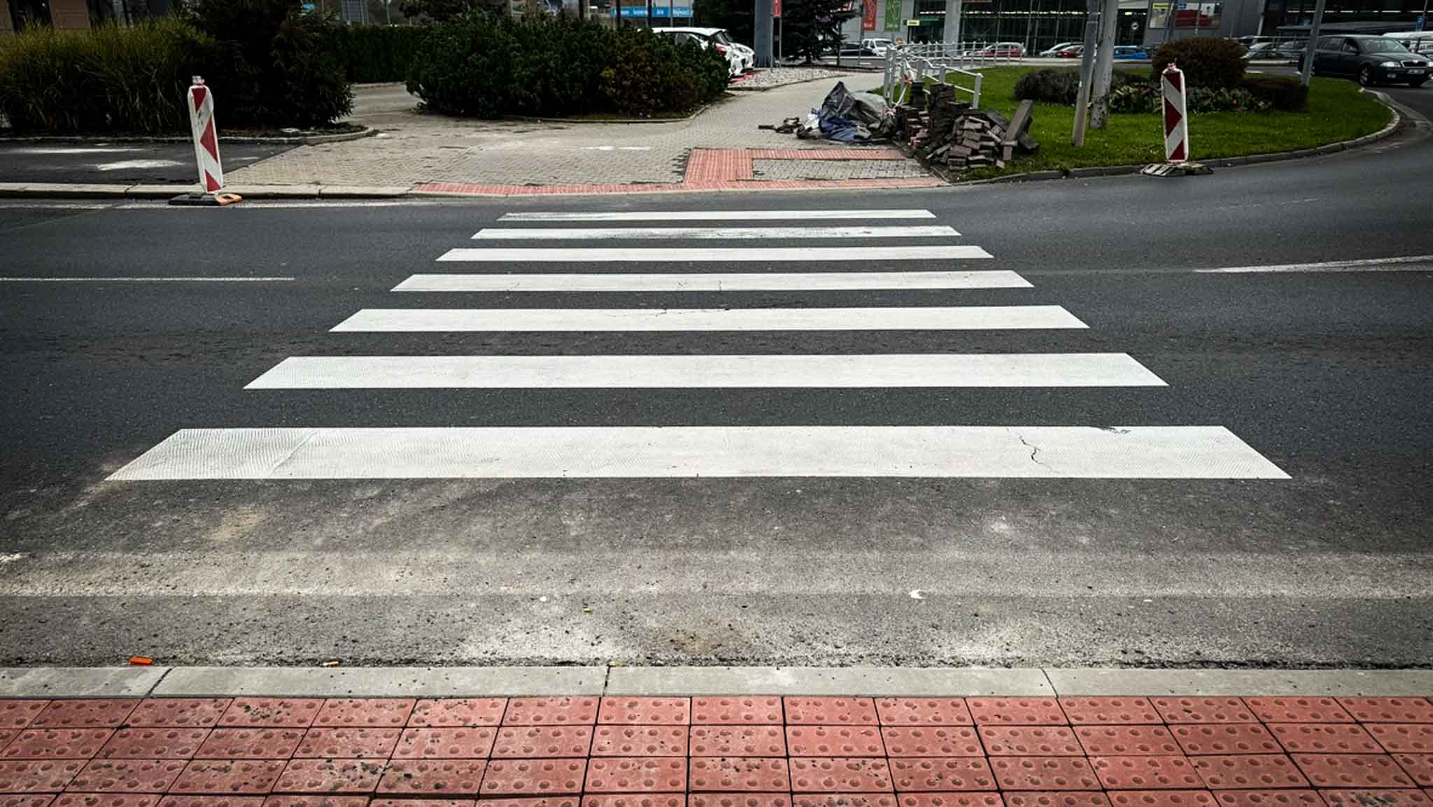 Upravujeme okolí přechodů pro chodce zámkovou dlažbou s plastickou úpravou povrchu pro nevidomé a slabozraké chodce. Signální a varovné pásy umožňují chodcům lepší orientaci a to zejména v blízkosti zmíněných přechodů. Foto z rekonstrukce chodníku a přechodu pro chodce v ulici Višňová. Jsme tu pro Vás…
