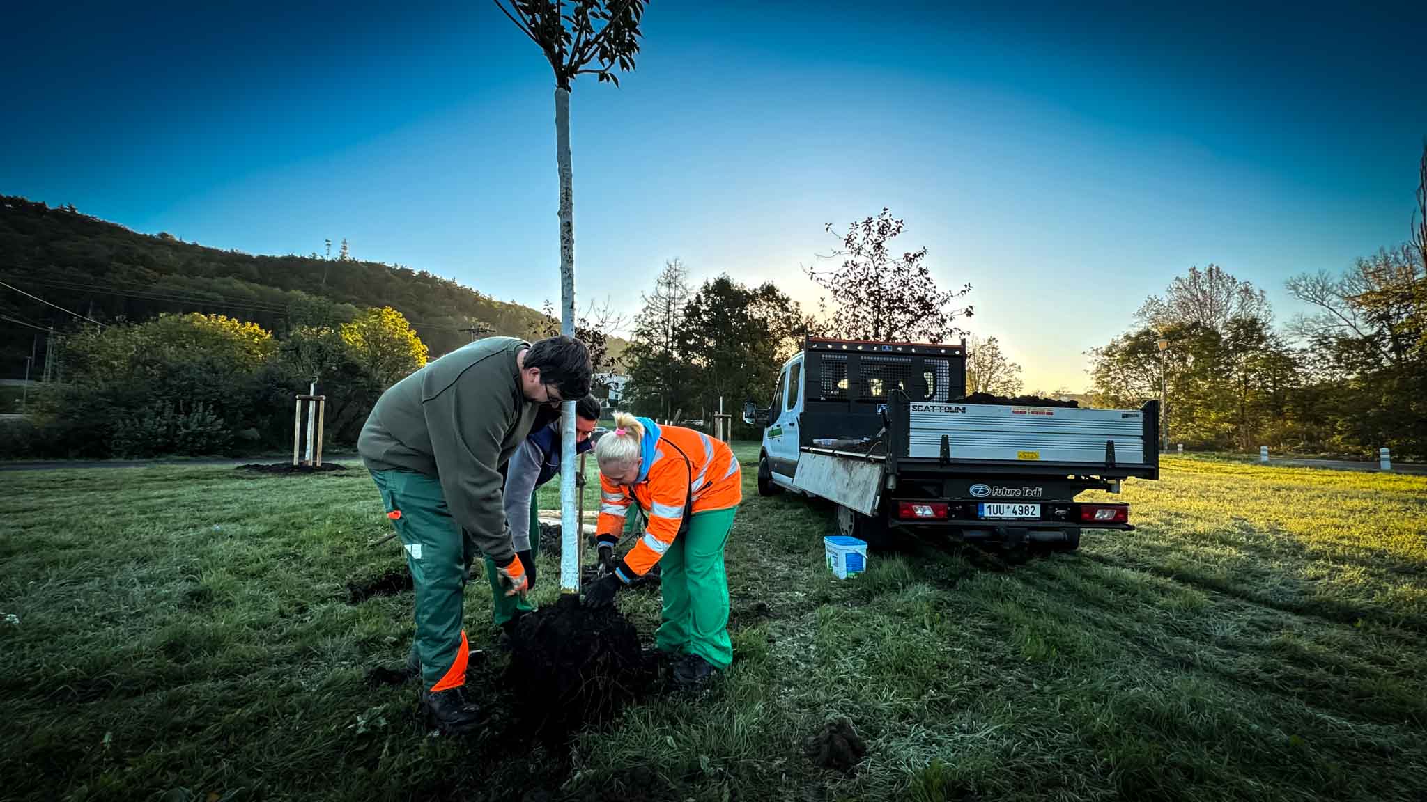 S odkazem na minulý článek, ve kterém jsme Vás informovali o sázení nových stromů v našem městě se měsícem listopad tato činnost rozjela na plné obrátky. Jak již jsme informovali, podzimní období je velmi vhodné pro dostatečné zakořenění sazenic díky vlhkosti a stále ještě prohřáté půdě z letního období. Plánovaný počet sazenic je cca. 200 kusů a na fotografii můžete vidět sázení malých kaštanů v areálu školky v ulici Komořanská. Jsme tu pro Vás…