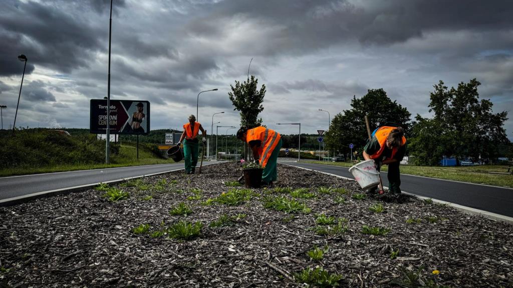 V uplynulých týdnech jsme provedli terénní úpravy kruhových objezdů ve zmíněné lokalitě. Na podkladovou vrstvu jsme položili písčitohlinitý substrát, který zajistí lepší podmínky pro zakořenění budoucí okrasné vegetace. Než zasadíme první rostlinky je ale zapotřebí, aby nejdříve „vzešel“ plevel, který poté odstraníme. Jedná se o běžný postup při osazování podobných lokalit. Jsme tu pro Vás, Technické služby města Mostu.