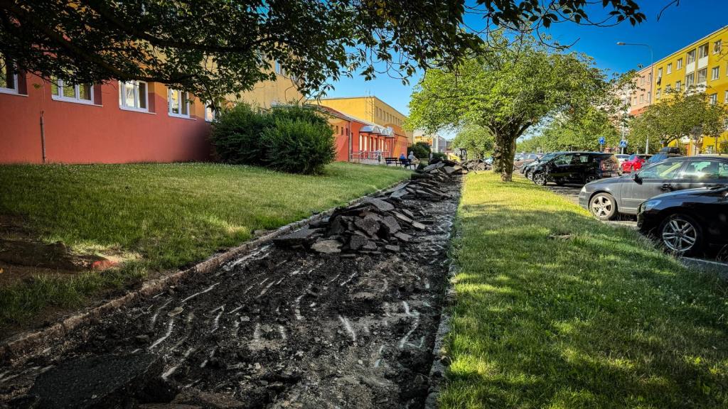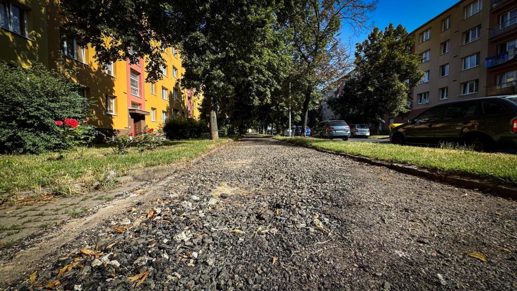Odstranění původního AB povrchu, sanace obrubníků a případných vpustí a na závěr pokládka nového asfaltového povrchu v ulici Česká u bloku 626. Jsme tu pro Vás...