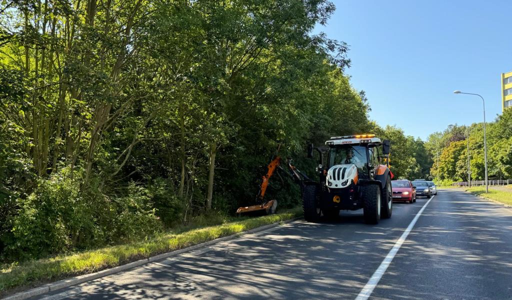 Součástí naší činnosti v rámci letní údržby je i vysekávání krajnic kolem městských komunikací. Foto z údržby krajnic v ulici Pod Lajsníkem. Jsme tu pro Vás...