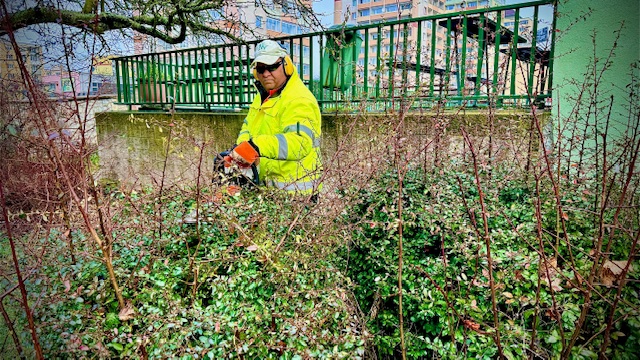 Úprava okrasných dřevin a keřů s úklidem travnatých ploch probíhala v uplynulých týdnech v části města Zahražany. Jsme tu pro Vás, Technické služby města Mostu.
